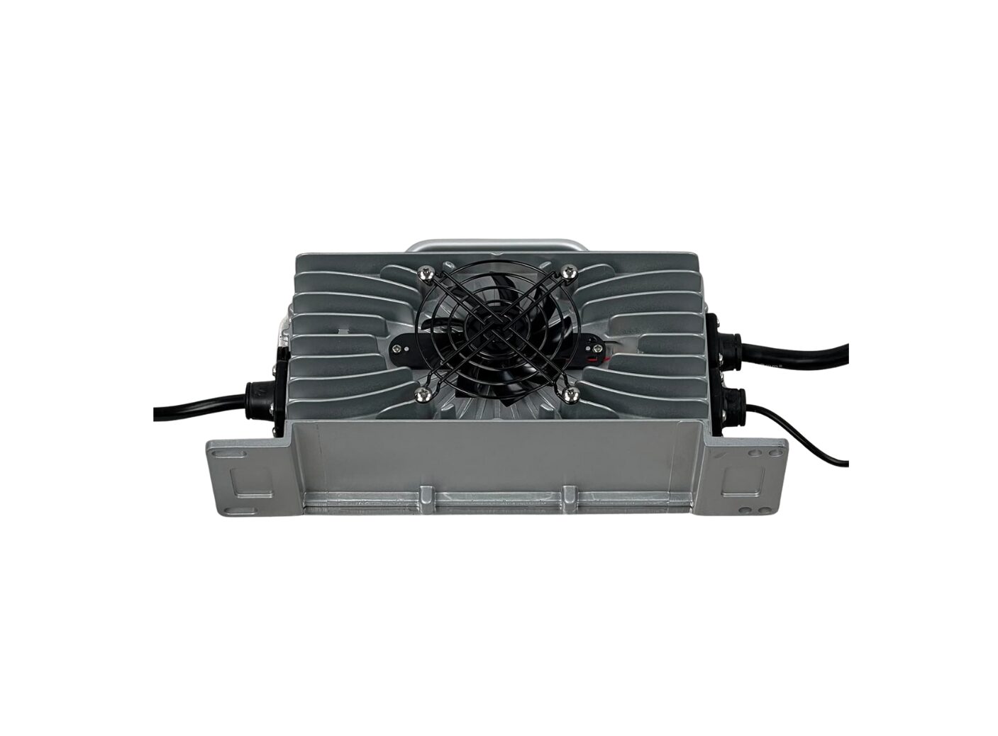 Équipé d’un ventilateur intégré, le chargeur se refroidit automatiquement pendant la charge pour éviter toute surchauffe. Sa conception respecte les standards de sécurité des batteries lithium haute capacité utilisées sur les modèles Frison. Il assure ainsi une longévité accrue des batteries tout en optimisant leur performance.
